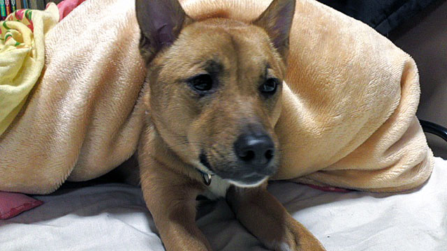 布団の中から、ゴゾゴゾ、顔を出した瞬間にカメラを向けた。