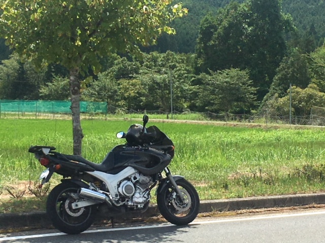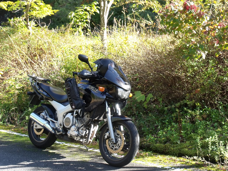 昨今の豪雨やら台風の所為で、荒れた舗装林道を走る。